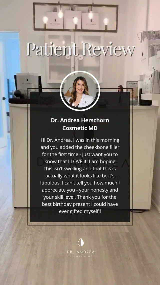 “Dr. Andrea is like magic. She always knows how to treat you perfectly and everything is so natural. I’ve seen people have treatments and honestly they look ridiculous- that is NEVER the case with Dr. Andrea. She takes her time, looks at every angle and always cuts you off when she knows you are good! There is nobody else I would ever trust. When you get big and famous for being the best, you better still have time for me! Xoxoxo”
